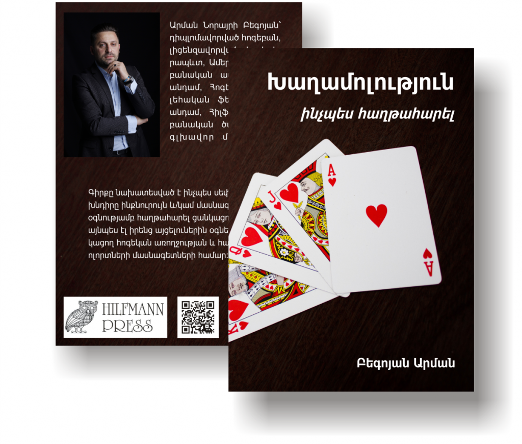 Նյութի աղբյուրը՝ Բեգոյան Ա․Ն․ Խաղամոլություն. ինչպես հաղթահարել / Ա․Ն․Բեգոյան. – Եր.: Հիլֆմանն Պրեսս, 2017. – 168 էջ։